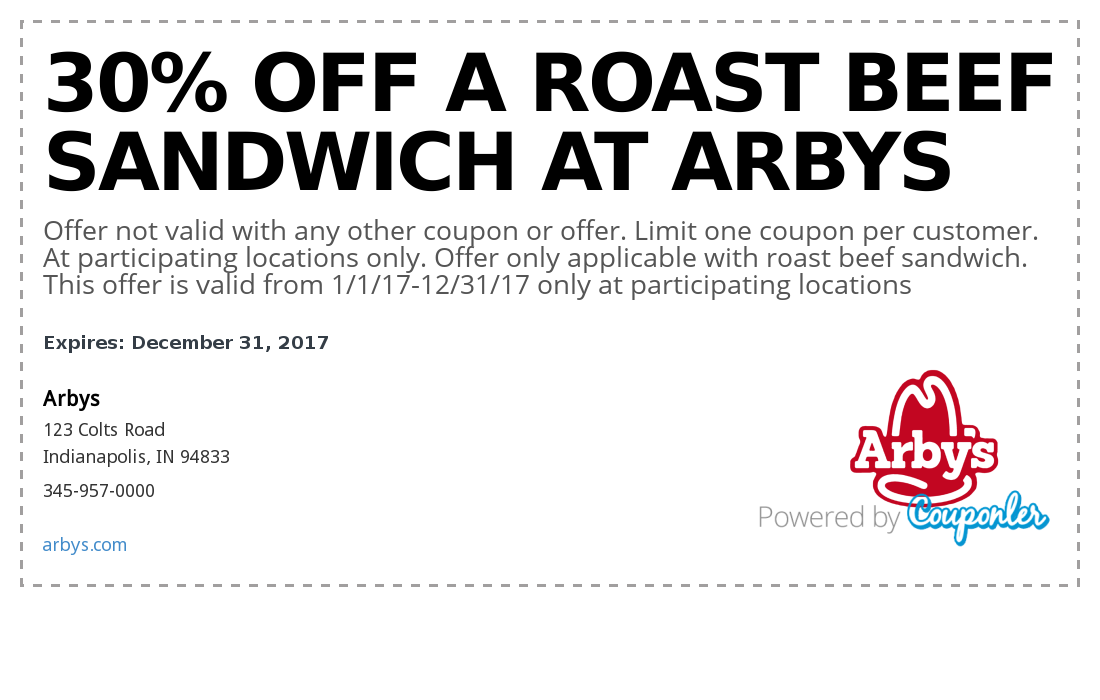 Free Arbys Sandwich with Purchase of a Drink from www.spoofee.com Maybe you would like to learn more about one of these? Check spelling or type a new query. We did not find results for: How much is a roast beef sandwich at arby's.